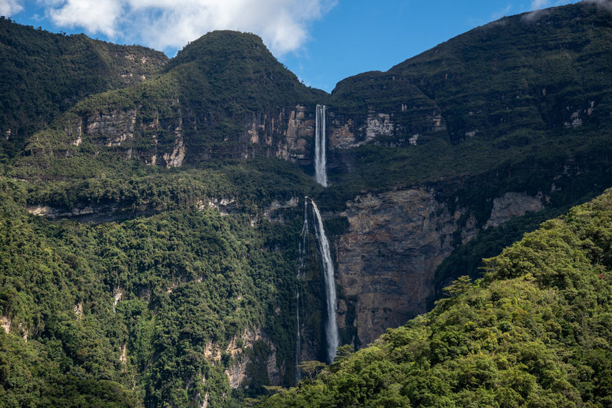 The impressive Gocta falls are born from the union of three small streams – called Shique, Zuta and Upa – that form in the Amazon cloud forest. Its waters create two falls, one of 231 m and another of 540 m. A German hydroengineer named Stefan Ziemendorff spotted the falls and, in 2006, made preliminary measurements: an astonishing 771m (2,531ft). When the rains load their streams they form a spectacular wall of water that reaches 771 m. which makes it one of the largest in the world.